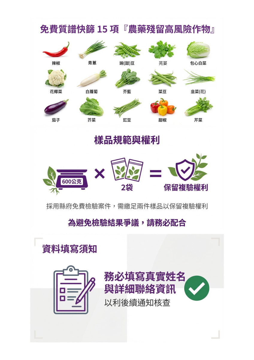 彰化縣政府115年度免費質譜快篩(針對15項「農藥殘留高風險作物」)