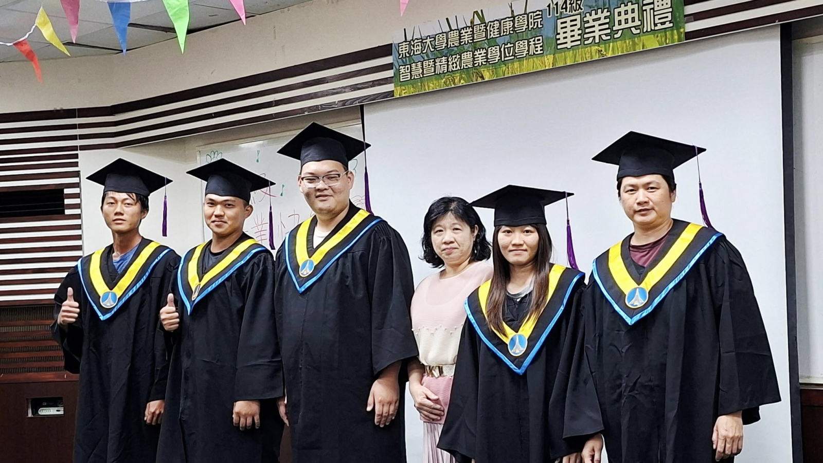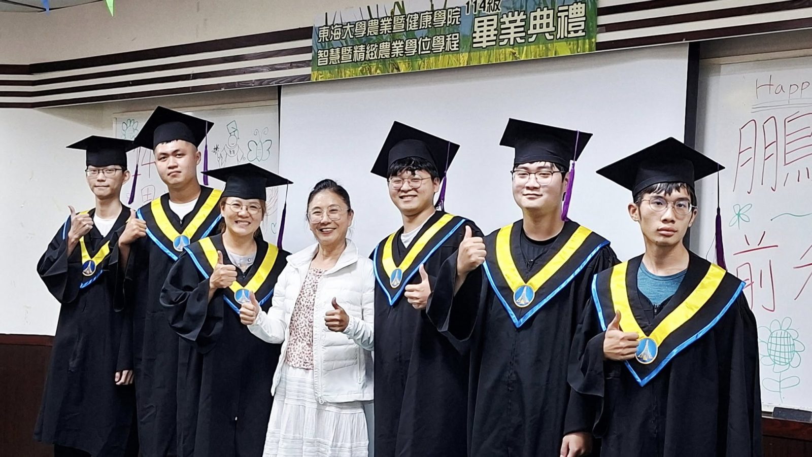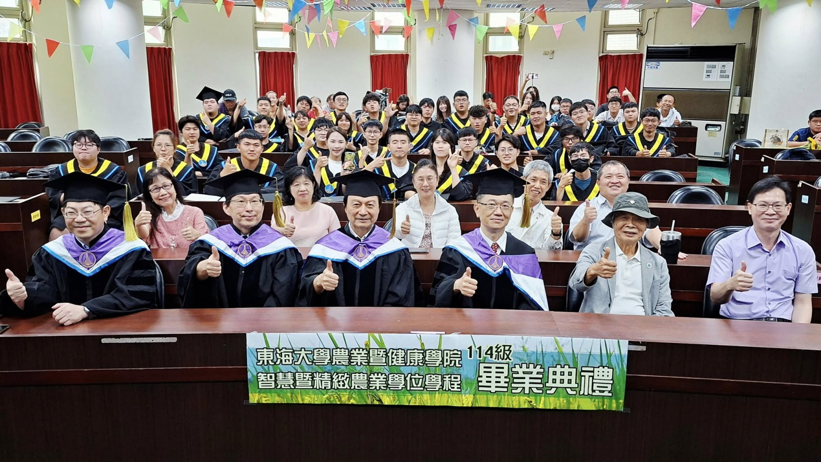 東海大學農健學院智慧暨精緻農業學位學程114級畢業典禮於彰化埤頭原明道校區-寒梅大樓梅20A國際會議廳溫馨舉辦,由學程與系學會共同籌劃與佈置,要帶給應屆畢業生難忘的大日子。