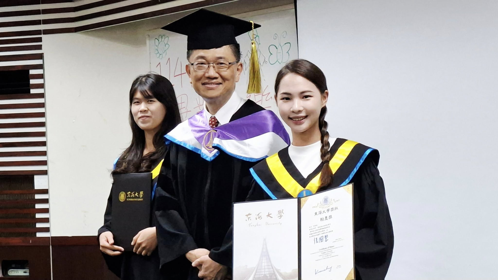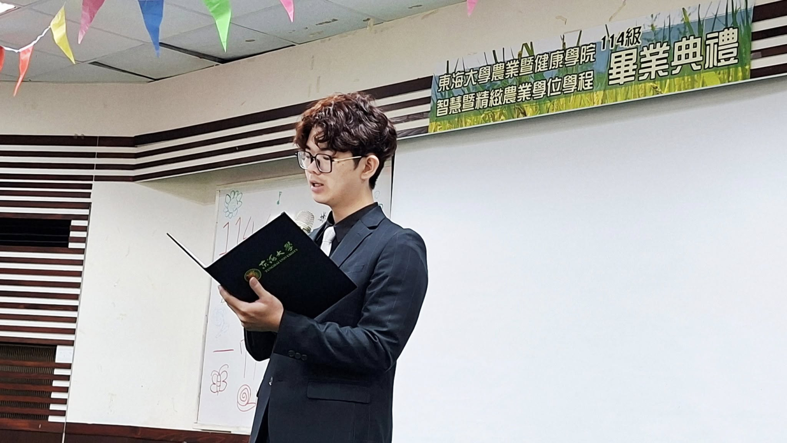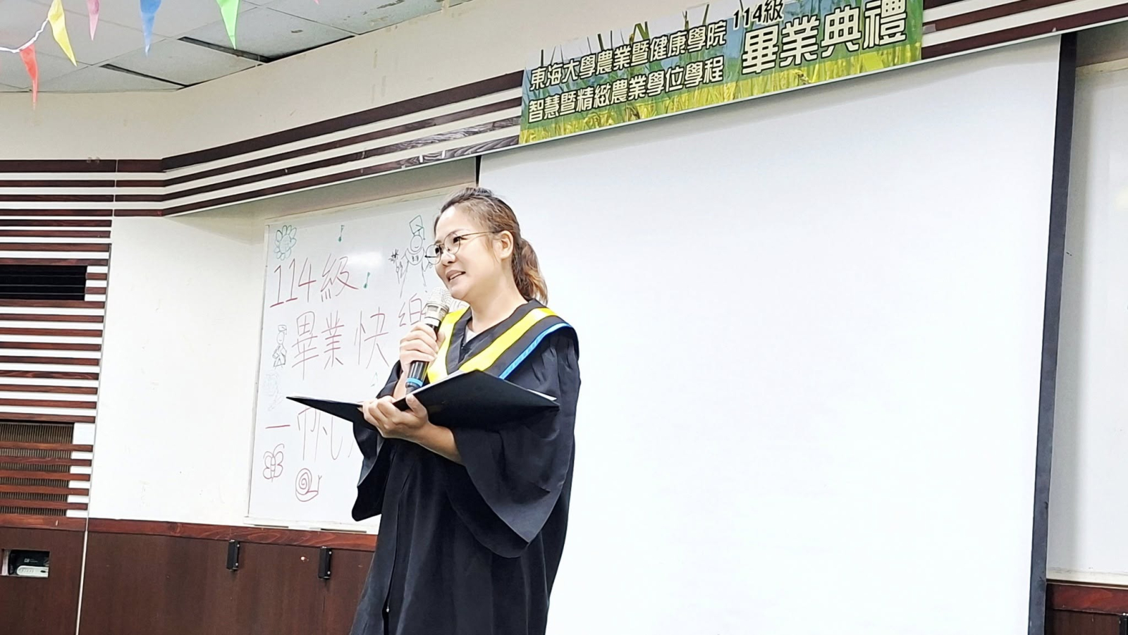 東海大學農健學院智慧暨精緻農業學位學程114級畢業典禮於彰化埤頭原明道校區-寒梅大樓梅20A國際會議廳溫馨舉辦,由學程與系學會共同籌劃與佈置,要帶給應屆畢業生難忘的大日子。